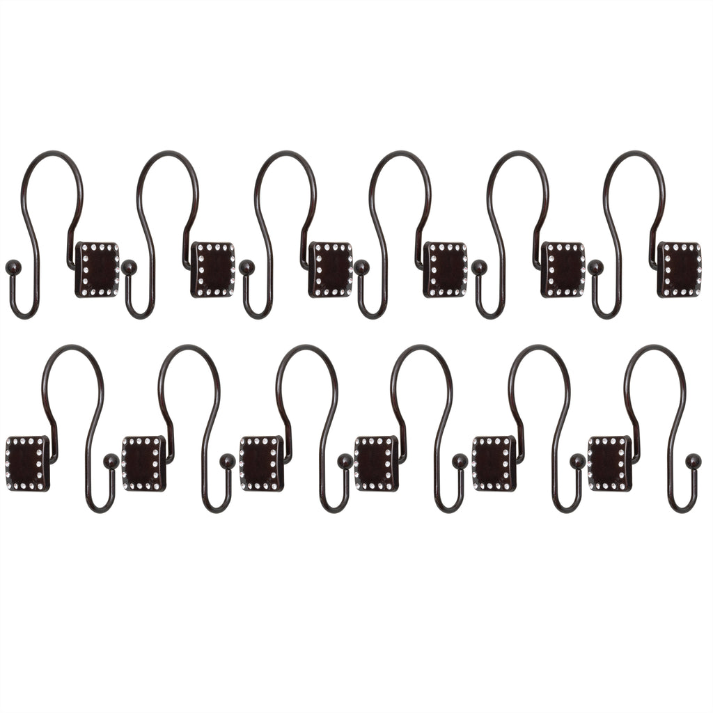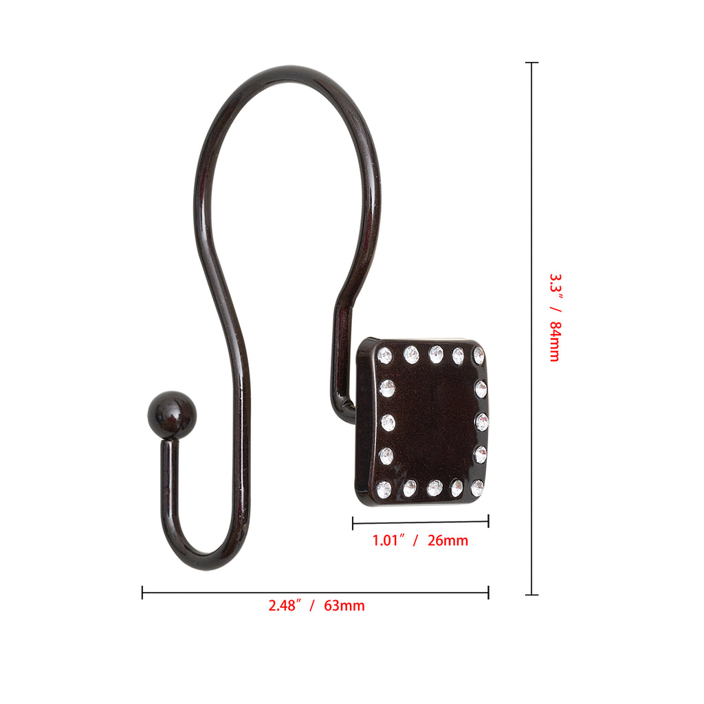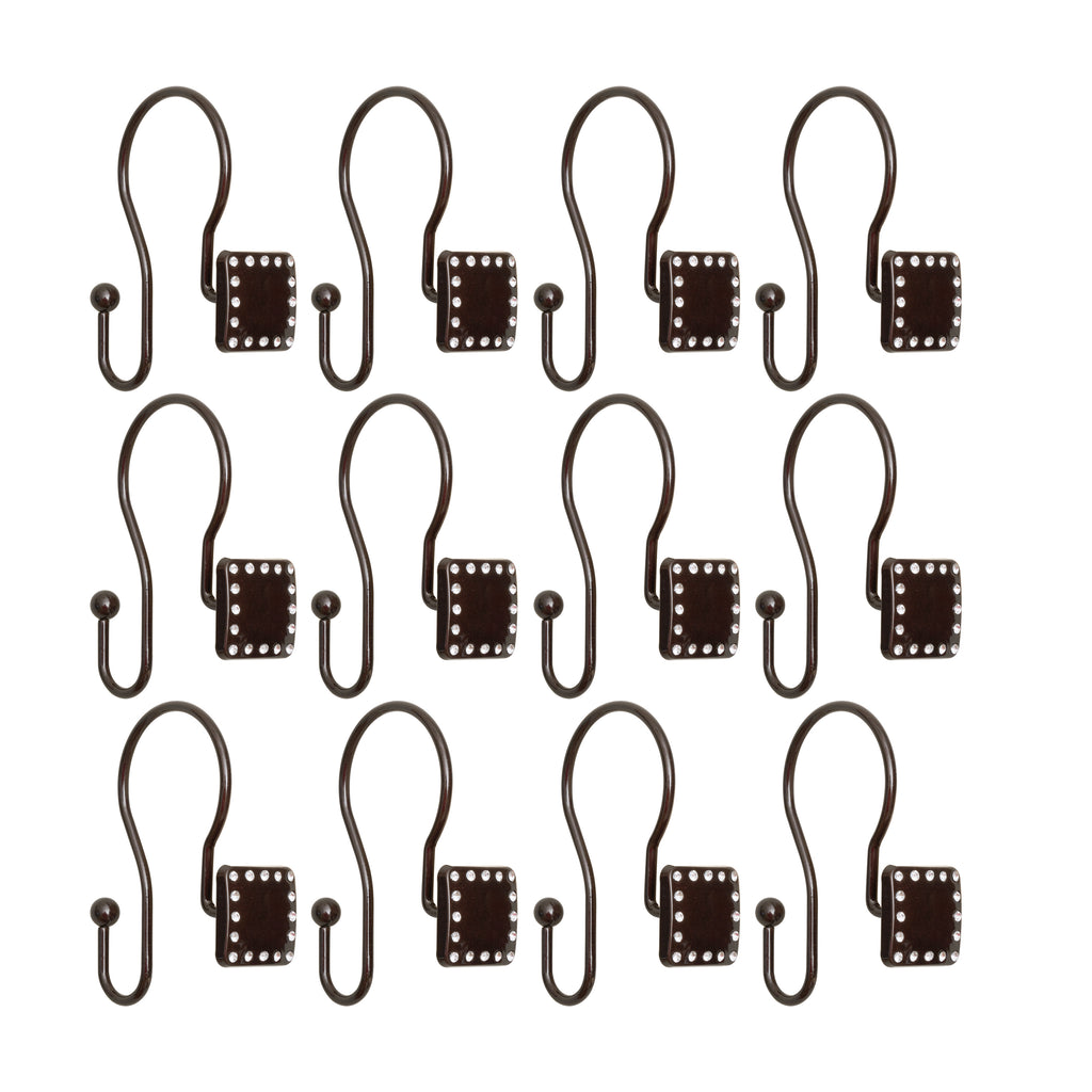- AVAILABLE COLORS: Amp up your bathroom space and get organized with these shower curtain hooks. Beautifully suited for any bathroom, these crystal-designed hooks come in a wide range of colors; Polished Chrome, Oil Rubbed Bronze, Brushed Nickel, Matte Black, and Gold.